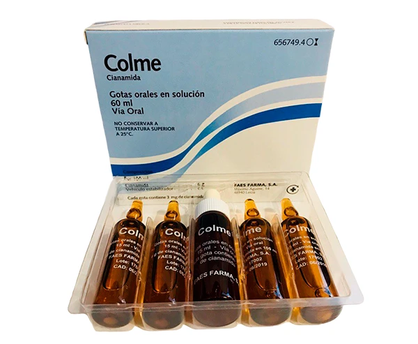 Рецептурный фармакологический препарат «Колме®» («Colme®») от испанского производителя Faes Farma относится к группе лекарственных средств, используемых при лечении зависимости от алкоголя (N07BB – ЕРЛС РФ). Официальное утверждение производителем инструкций применения препарата – 2008 год. Выпускается в форме капель для внутреннего приёма. Это прозрачная бесцветная жидкость с неярким уксусным запахом.